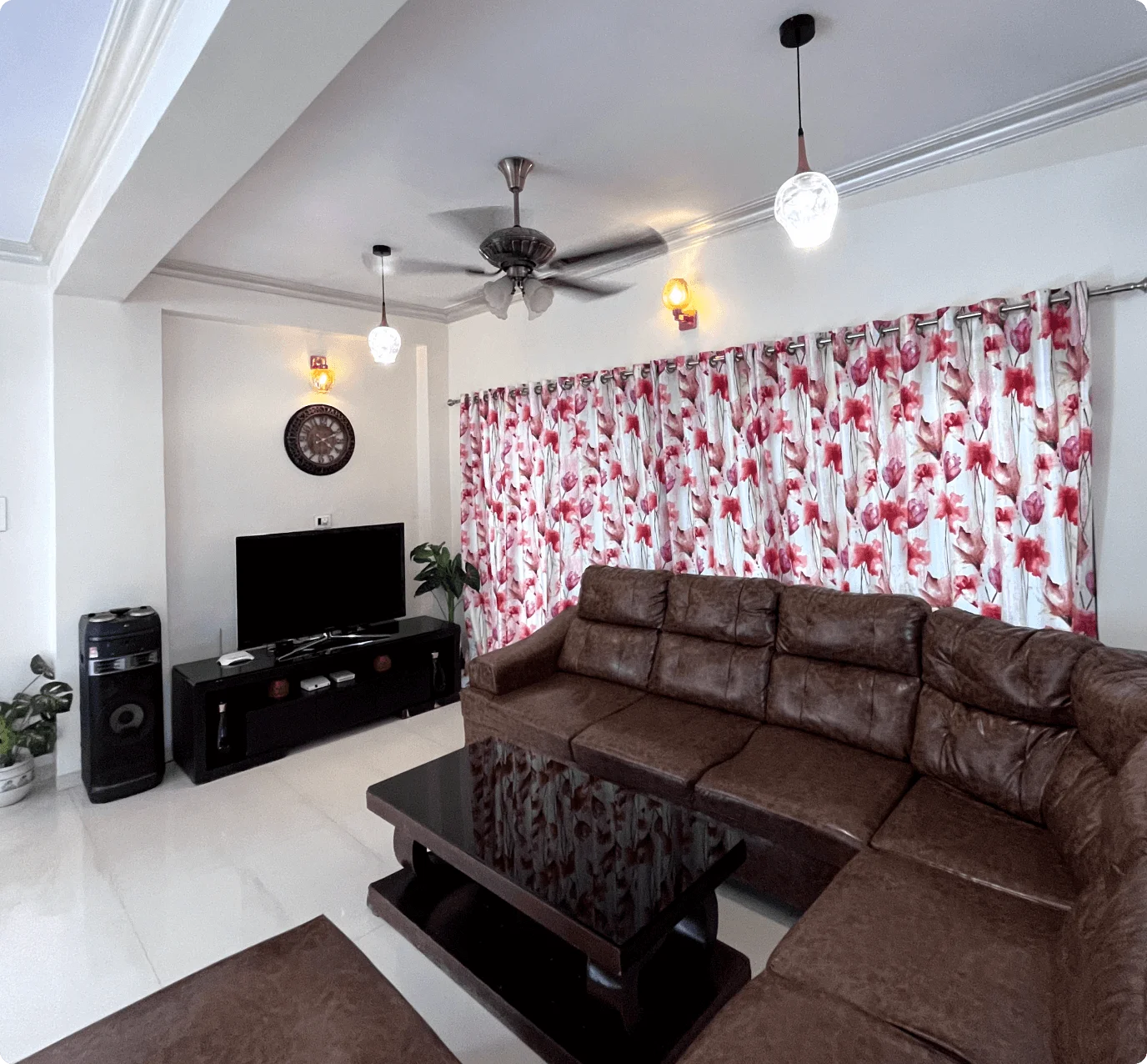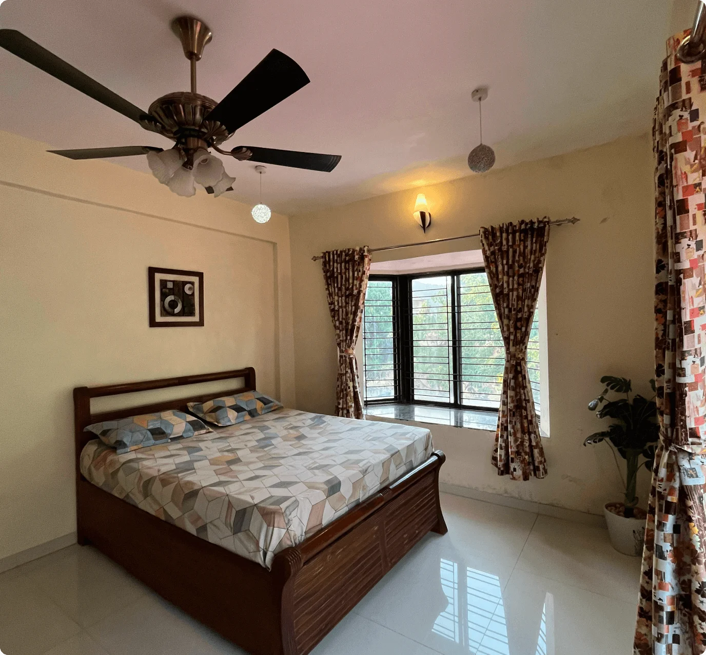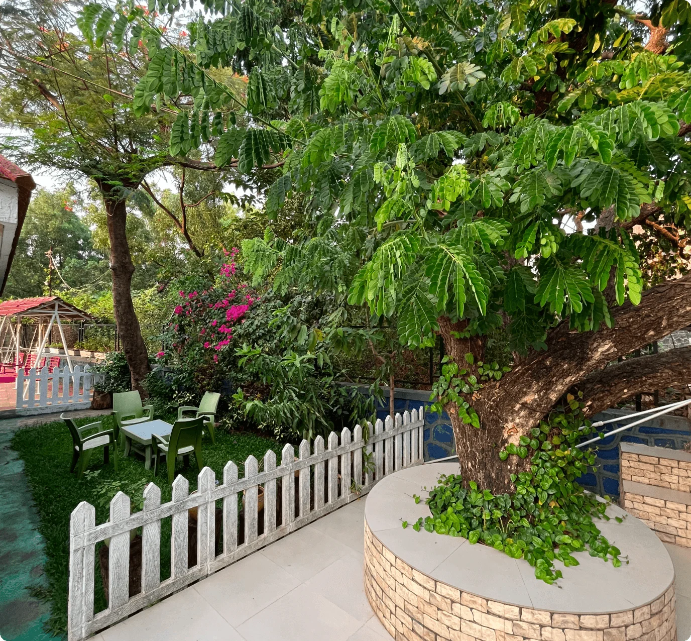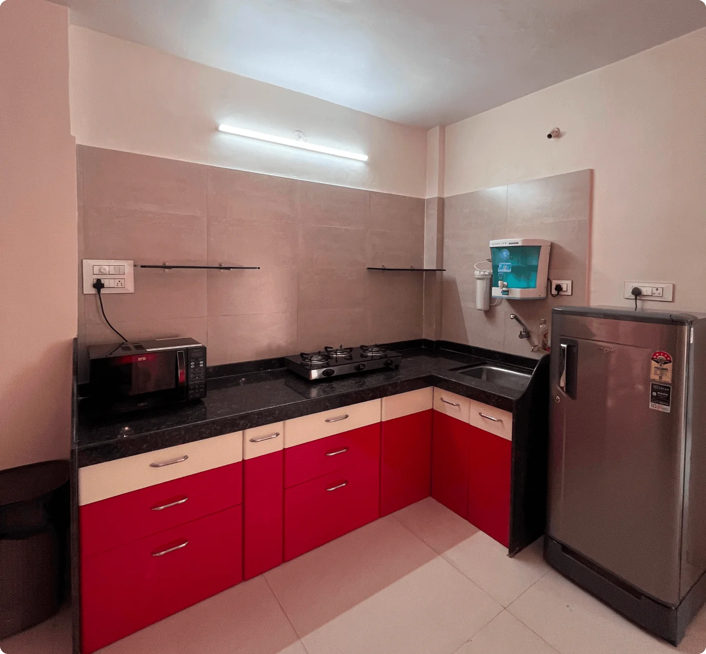 The living room boasts cozy sofas, an LED TV, music system, Wi-Fi, and an attached bathroom. The fully-equipped kitchen includes a refrigerator, microwave, and water purifier for meal prep. An on-site caretaker handles housekeeping and can prepare meals on request (extra charges). Located 12 minutes from Lonavala’s main market, guests can enjoy nearby restaurants or order food to the villa.