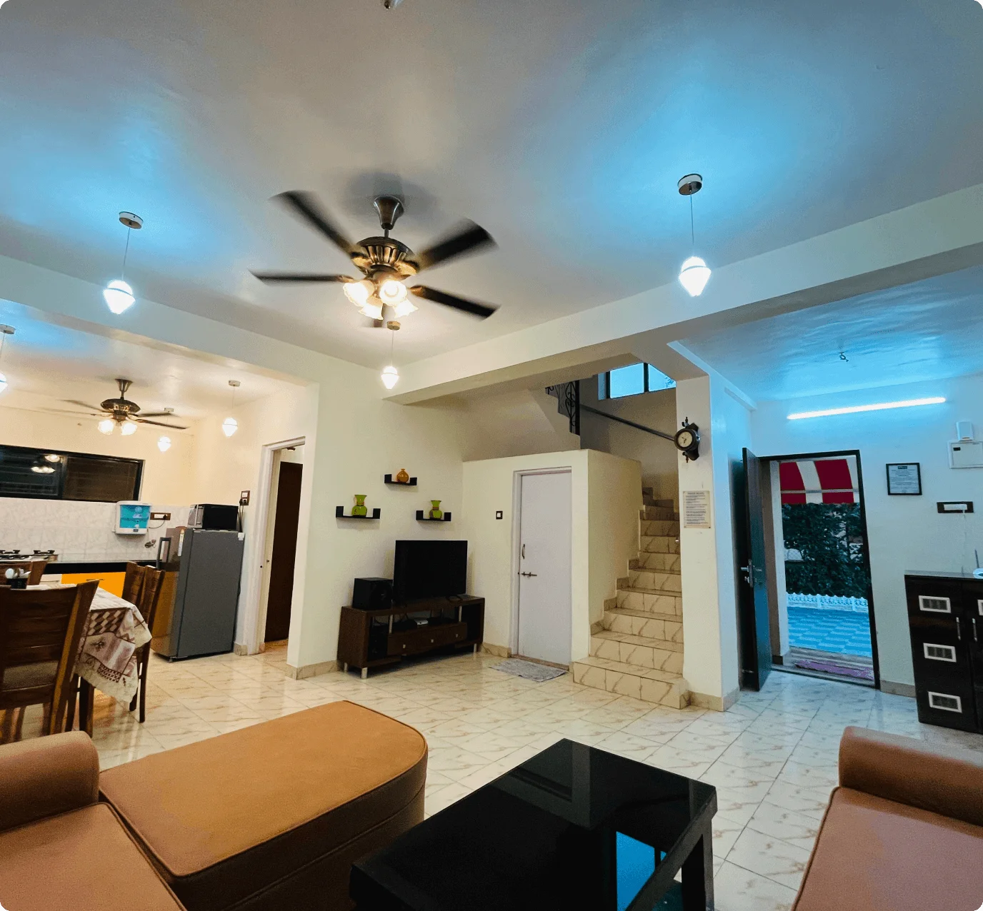 A fully-equipped kitchen is available for meal prep, with an on-site caretaker offering housekeeping and meal services (extra charges). Located 13 minutes from Lonavala’s main market, food delivery is also available.